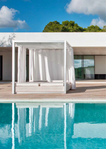 Стремление к уединению было тем, чем руководствовалась Эстер Кампос при разработке шатра с лежками Sunset. Его конструкция изготавливается из коррозионностойкого анодированного алюминия и плетения из SHINTOTEX – высокостойкого волокна, пригодного для вторичной переработки и разработанного компанией POINT. Внутри находятся два лежака с регулируемыми спинками. Навес изделия образован сетчатым полотном. Модель представлена в двух вариантах комплектации: со шторами и без. Sunset – это элемент, который вызывает определенный романтизм.
