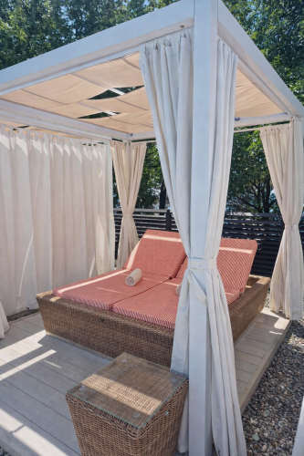 Элегантный и надежный шатер MERCURY превращает любую площадку в уютную зону отдыха. Продуманный дизайн, профессиональные материалы, удобные шторы делают его отличным выбором для дома, кафе или загородного участка. Надежный алюминиевый каркас, устойчивое покрытие и комплект штор обеспечивают комфортную тень и приватность при минимальном уходе.