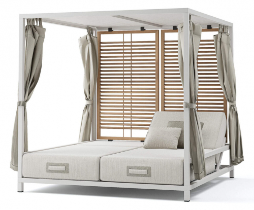 Шатер с двумя лежаками и шторами Alcova Dining спроектирован как гибридное крытое пространство, которое при этом сообщается с внешней средой. Гармоничная и элегантная модель создает эксклюзивные зоны под открытым небом, в которых можно наслаждаться природой в полном комфорте. Вы сможете делать это вдвоем, настраивая свой лежак так, как Вам нравится.