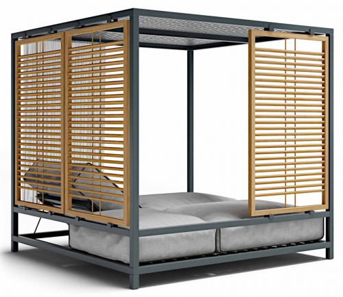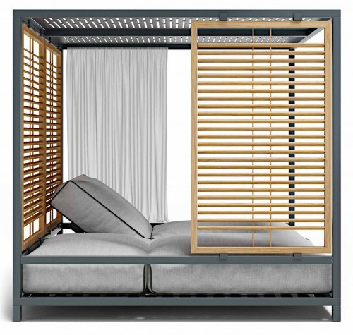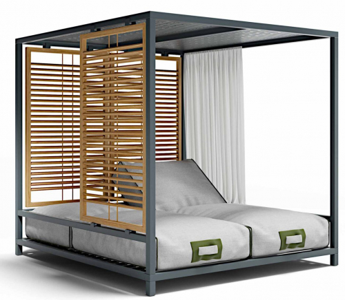 Шатер с двумя лежаками и шторами Alcova Dining спроектирован как гибридное крытое пространство, которое при этом сообщается с внешней средой. Гармоничная и элегантная модель создает эксклюзивные зоны под открытым небом, в которых можно наслаждаться природой в полном комфорте. Вы сможете делать это вдвоем, настраивая свой лежак так, как Вам нравится.