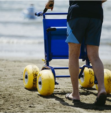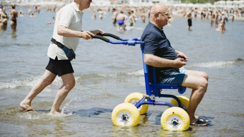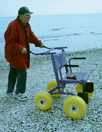 Rider - это кресло-ходунки, которое позволяет людям с временной или постоянной инвалидностью перемещаться в суровых условиях, таких как пляж или снег.