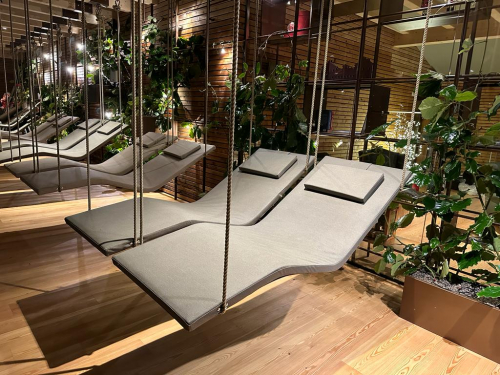 После сильного ливня появляется радуга (arc en ciel в переводе с франц.), поэтому лежак Arc En Ciel кажется подвешенным в воздухе. Модель заключает в удобные объятия, которые нежно укачивают нас, как будто мы далеки от реальности. Мы чувствуем себя так, словно попали в воображаемый мир приятных ощущений и максимального комфорта.