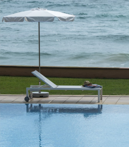 Olimpia - это очень прочный шезлонг-лежак с рамой из усиленного алюминия. Доступен в версиях с колесами и без. Его эргономичный дизайн обеспечит безопасный и комфортный отдых. Шезлонг подойдет для бассейна и принятия солнечных ванн, для пляжей, отелей, курортов или частных клубов. Современный и стильный дизайн, равновесие баланса при неравномерном распределении давления, 5-позиционная регулируемая спинка, легко заменяемая ткань.