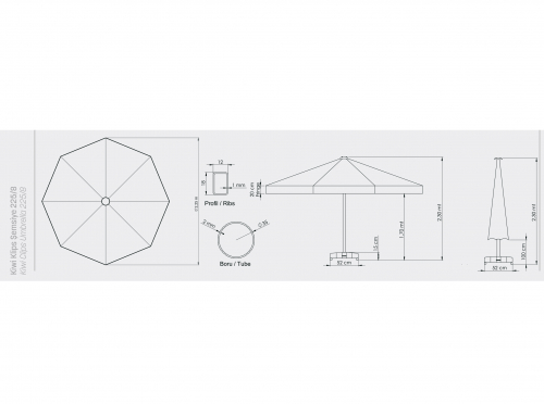 Зонт пляжный профессиональный Ø2.25 м Kiwi Clips