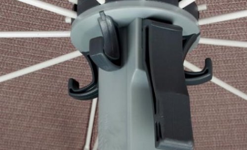 Конструкция Prestige разработана и запатентована компанией CiCCAR, чтобы обеспечить максимальный комфорт и универсальность во время открытия и закрытия зонта. Это стало возможным благодаря ручке (a), которая, как простой рычаг, позволяет освобождать хомут от пружины.