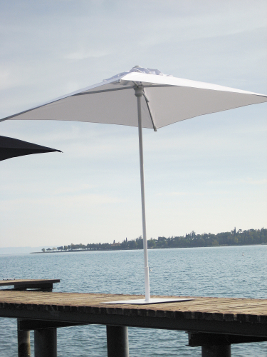 Каркас зонта выполнен из окрашенного алюминия в белый цвет или антрацит, купол выполнен из олефина. Волокна этого материала быстро высыхают после намокания и плесень просто не успевает образовываться в его текстуре. Кроме того, окрашенные на этапе изготовления волокна являются на удивление стойкими к выцветанию, поэтому прямые солнечные лучи и ультрафиолет им не страшны.