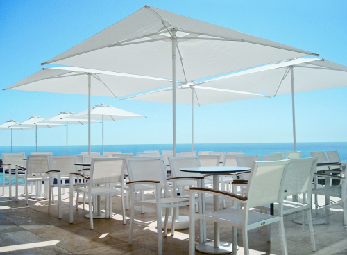 Профессиональный уличный зонт Ocean с центральной опорой подойдет для затенения пространств различного назначения: как домашнего сада, так и летней площадки кафе.