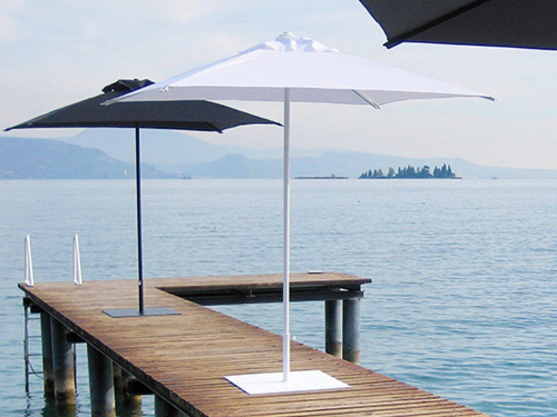 Каркас зонта выполнен из окрашенного алюминия в белый цвет или антрацит, купол выполнен из олефина. Волокна этого материала быстро высыхают после намокания и плесень просто не успевает образовываться в его текстуре. Кроме того, окрашенные на этапе изготовления волокна являются на удивление стойкими к выцветанию, поэтому прямые солнечные лучи и ультрафиолет им не страшны.