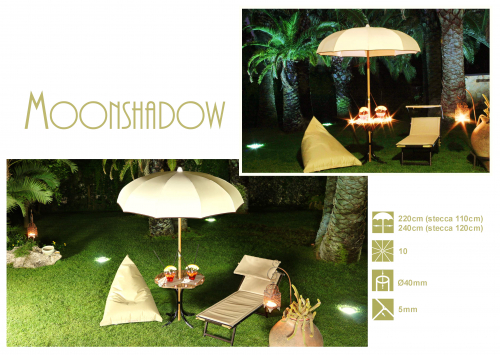 Благодаря прочному алюминиевому каркасу и куполу из ткани морской акрил (acrilmare) зонт Moonshadow прослужит Вам долгое время.