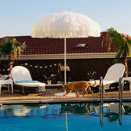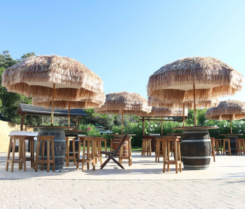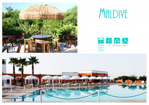 Круглый зонт Maldive предназначен для использования на морских побережьях. Помимо защиты от солнца, он создает особую атмосферу с шелестом ветряной рафии, напоминающей шелест пальм на пляжах Карибского моря.