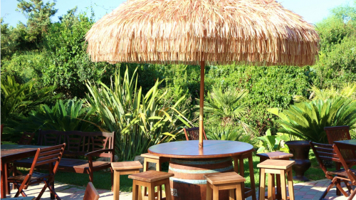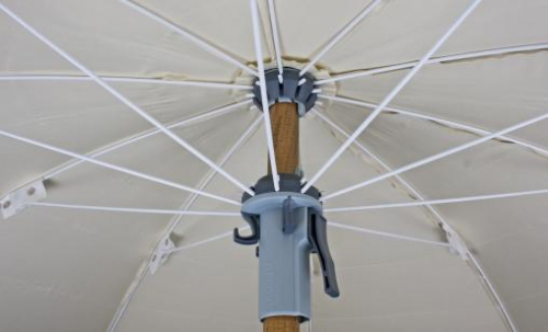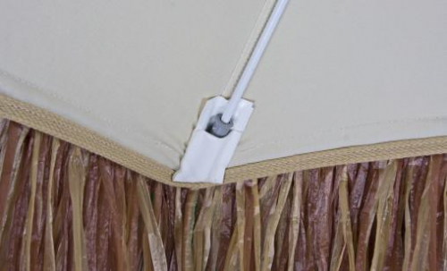 Покрытие зонта выполнено из многослойной "соломки", так называемой рафии - синтетической пряжи высокого качества. Благодаря этому зонт сохраняет свежий летний вид.