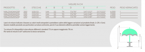 Благодаря прочному алюминиевому каркасу и куполу из ткани морской акрил (acrilmare) зонт Maldive прослужит Вам долгое время.