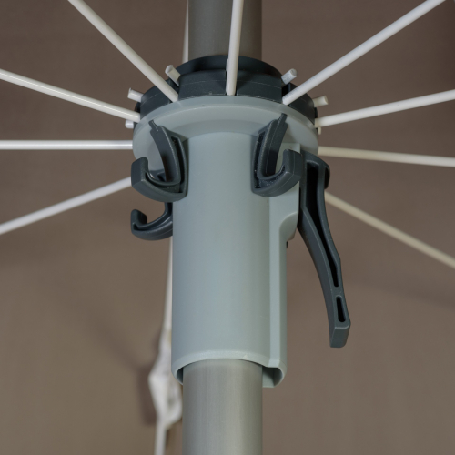 Конструкция Prestige разработана и запатентована компанией CiCCAR, чтобы обеспечить максимальный комфорт и универсальность во время открытия и закрытия зонта. Это стало возможным благодаря ручке (a), которая, как простой рычаг, позволяет освобождать хомут от пружины.