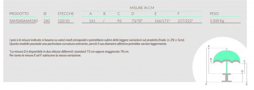 Благодаря прочному алюминиевому каркасу и куполу из ткани морской акрил (acrilmare) зонт Samsara прослужит Вам долгое время.