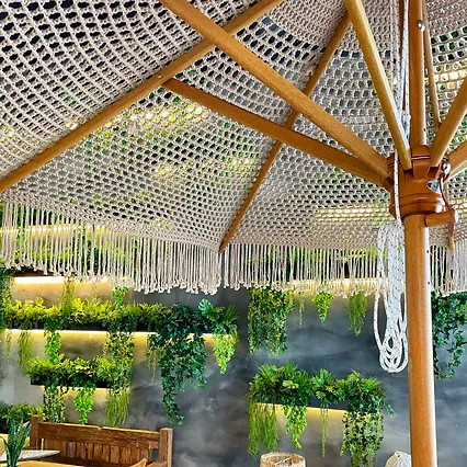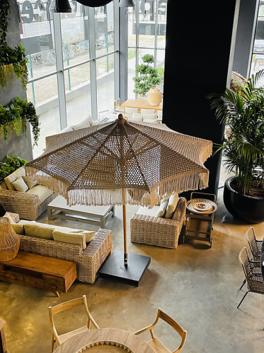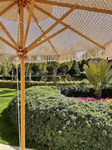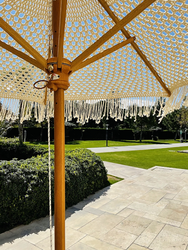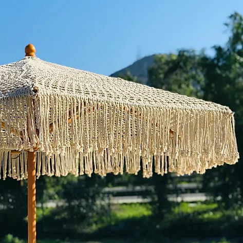 Palladio Boho - это эффектный зонт в стиле бохо с бахромой и оригинальным орнаментом, связанный вручную крючком. Модель идеально подходит для пляжа, открытой летней площадки кафе, ресторана, праздничной церемонии на открытом воздухе, а также станет прекрасным украшением частного двора и сада. Нейтральный оттенок делает зонт чрезвычайно универсальным, чтобы органично вписаться в любое пространство.