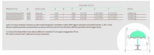Благодаря прочному алюминиевому каркасу и куполу из ткани морской акрил (acrilmare) зонт Diamond прослужит Вам долгое время.
