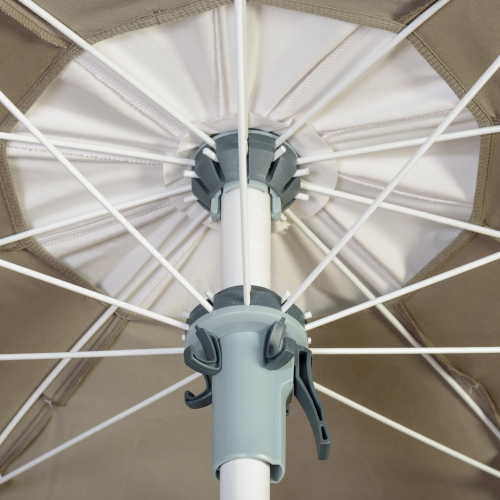 Пляжный зонт с защитой от ультрафиолетового излучения легко открывается благодаря конструкции Prestige, обеспечит полную защиту от солнечных лучей в летнее время, и обеспечит комфортный отдых в знойную погоду.