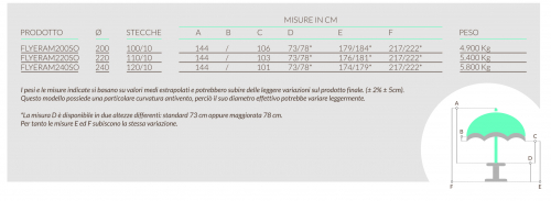 Благодаря прочному алюминиевому каркасу и куполу из ткани морской акрил (acrilmare) зонт Flyer прослужит Вам долгое время.