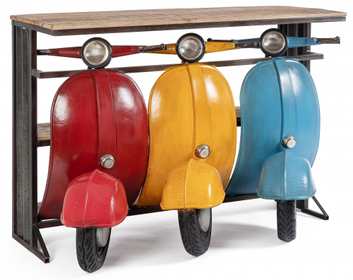 Исключительное изделие, которое идеально подойдет для различных мероприятий. Благодаря красивому теплому цвету доски из дерева манго барная стойка будет выделяться в интерьерах, выполненных как в светлых, так и в темных тонах. Любителям мотороллеров наверняка понравится!