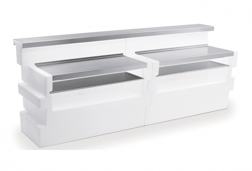 Tetris – это центральный модуль, с помощью которого можно создать различные конфигурации. Можно поставить радом с угловым или линейным модулем, за счет чего получиться барная стойка или высокий буфетный стол, который идеально подходит как для закрытых помещений, так открытых пространств. Большое количество опций и разнообразных аксессуаров позволяют создать оригинальную и эксклюзивную композицию, отвечающую многим потребностям даже самого капризного клиента.