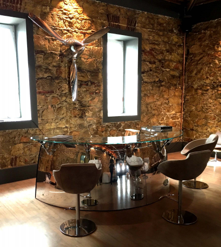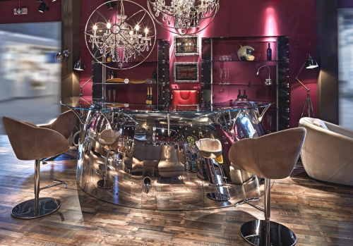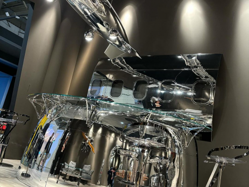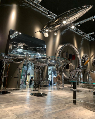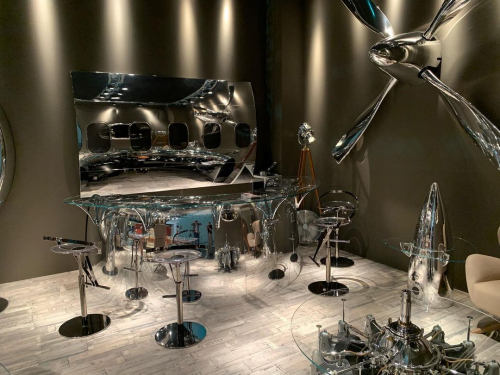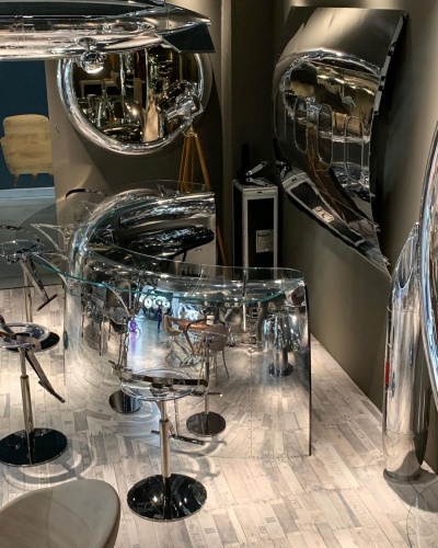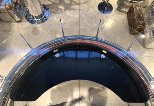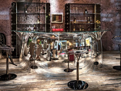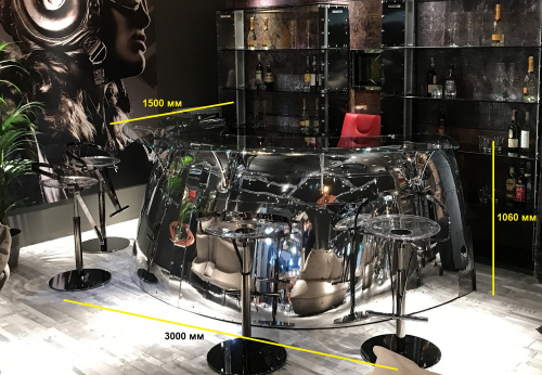 Барная стойка Aeronautica AIR-BAR0060 изготовлена из капота двигателя Боинг 747 с зеркальной полировкой. Этот уникальный предмет интерьера сочетает в себе авиационную историю и современный дизайн, превращая массивный капот в изысканную барную стойку. Столешница из особо прозрачного стекла с шестью опорами придает стойке легкость и визуальную чистоту, в то время как рабочая поверхность и внутренняя полка из черного плексигласа добавляют стиль и функциональность. Стойка станет центральным элементом вашего пространства, привлекая внимание своей эксклюзивностью и утонченностью, идеально подходящей для тех, кто ценит уникальные и роскошные предметы интерьера.