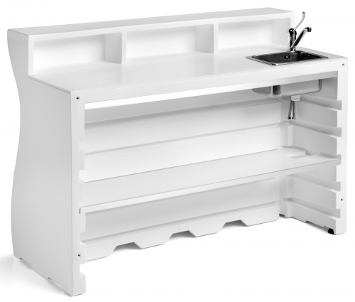 Прочная, простая в обслуживании модульная барная стойка с гладким дизайном. Вмещает 5 полок и имеет 3 ниши, можно установить столешницу. Позволяет создавать бесконечные конструктивные решения: стойки ресепшн, барные стойки, фуршетные консоли. Полный ассортимент аксессуаров для бара и его версия с подсветкой делают Bartolomeoуниверсальным продуктом для использования внутри и снаружи помещений.