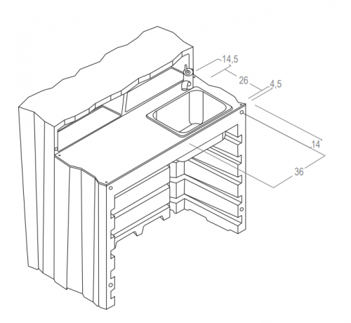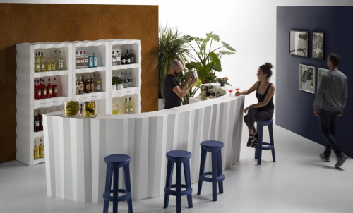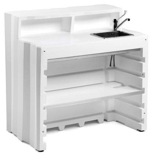 Модульная барная стойка с мойкой обеспечивает рабочую поверхность и возможность мытья посуды. В нижнем отсеке можно разместить холодильные камеры и встроенную бытовую технику. Характерная граненая поверхность “закрывает” стыки между модулями, обеспечивая равномерное и последовательное сочетание. Стойка Frozen подходит для внутреннего и наружного использования, она также доступна в светящемся исполнении и оснащена полным набором барных аксессуаров.
