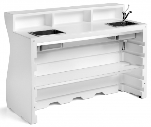 Прочная, простая в обслуживании модульная барная стойка с гладким дизайном. Вмещает 5 полок и имеет 3 ниши, можно установить столешницу. Позволяет создавать бесконечные конструктивные решения: стойки ресепшн, барные стойки, фуршетные консоли. Полный ассортимент аксессуаров для бара и его версия с подсветкой делают Bartolomeoуниверсальным продуктом для использования внутри и снаружи помещений.