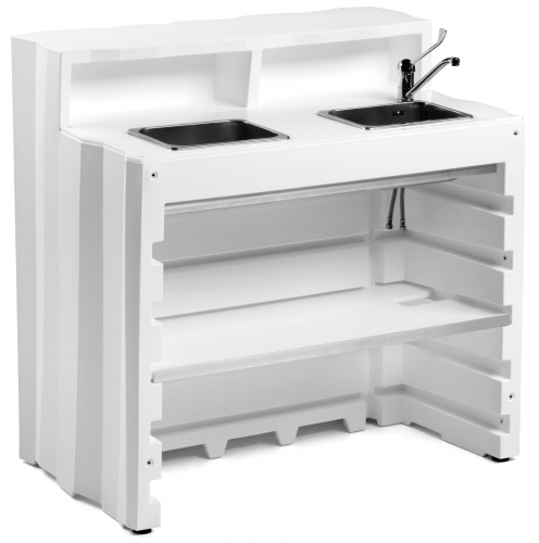 Модульная барная стойка с мойкой обеспечивает рабочую поверхность, возможность мытья посуды и хранения бутылок в ящике для льда. В нижнем отсеке можно разместить холодильные камеры и встроенную бытовую технику. Характерная граненая поверхность “закрывает” стыки между модулями, обеспечивая равномерное и последовательное сочетание. Стойка Frozen подходит для внутреннего и наружного использования, она также доступна в светящемся исполнении и оснащена полным набором барных аксессуаров.