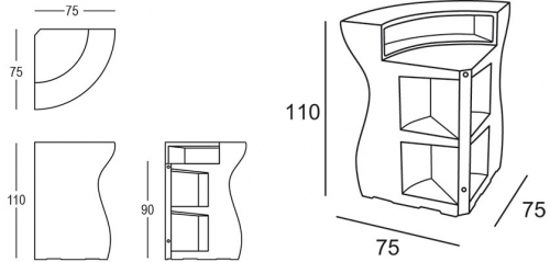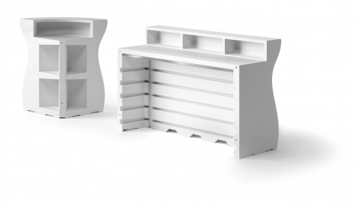 Угловой элемент, который можно использовать отдельно или в паре для создания небольших ресепшн. Барную стойку Bartolomeo легко перемещать, ударопрочный и позволяет устанавливать столешницу. В ней 4 ниши для хранения вещей и еще 2 на столешнице. В сочетании с прямым элементом она создает бесконечные решения.