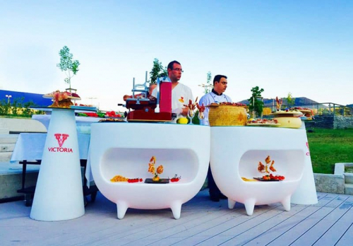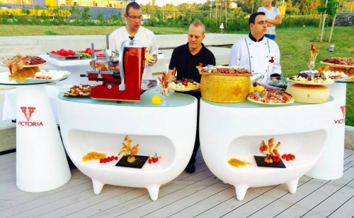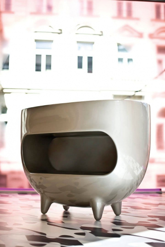 Splay - это универсальный предмет мебели: он может использоваться как витрина во время событий или как стол во время рекламной деятельности. Благодаря большой полке Splay позволяет привлечь внимание к изделию. Splay идеально подходит также как банкетный модуль или модуль для обслуживания во время элегантных мероприятий, особенно в светящейся версии. Модульная витрина Splay в стандартной, лакированной или светящийся версии создана эклектичным дизайнером Karim Rashid и настраивается с помощью логотипов и изображений для уникальных событий.