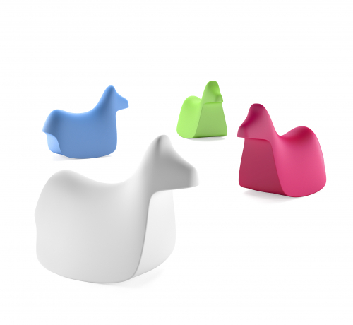Разработанный Олегом Пугачевым, верный скакун Pony предлагает свое седло бесстрашным современным наездникам, готовым принять вызов приключений в мире фантазий. Этот предмет нравится детям, но заставляет мечтать и взрослых, благодаря своим культовым формам, которые делают его идеальным как для внутреннего, так и для наружного использования.
