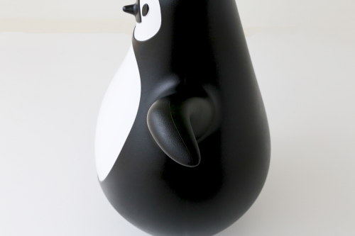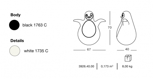 Птенцы пингвинов покрыты серыми мягкими перьями и, когда вырастают, они становятся черно-белыми, но я воспользовался свободой художника и позволил этому конкретному птенцу пингвина иметь черно-белые перья. Форма головы и профиль с милым клювом имеют правильные пропорции, а глаза имеют реалистичную миндалевидную форму, характерную для птенцов пингвинов. Этот маленький пингвин, возможно, слишком много ел, поэтому у него круглый живот, но эта округлая форма позволяет ему имитировать реалистичное движение вперевалку, что делает его таким привлекательным и милым.» - говорит о своем творении Ээро Аарнио.