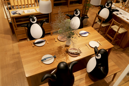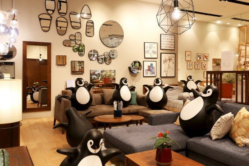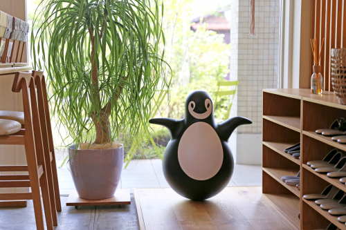 Оригинальный декор в виде неваляшки-пингвина Pingy от итальянской фабрики Magis был придуман дизайнером Ээро Аарнио. Это один из самых известных дизайнеров Финляндии, который работает в международных музеях, включая MoMa, V&A и Vitra Design Museum.