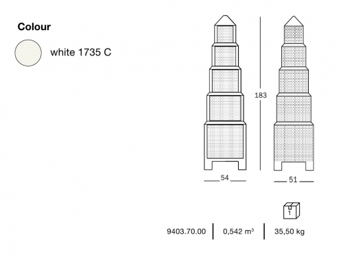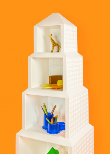 Downtown - это пластиковый стеллаж, разработанный Ойвой Тойккой. Он изготовлен из полиэтилена, полученного ротационным формованием. Этот скульптурный объект предлагает детям использовать небоскреб в качестве книжного шкафа для хранения книг и игрушек, что одновременно функционально и забавно. Доступный в белом цвете, его можно использовать в любой обстановке, от спальни до гостиной, создавая уникальный уголок с оригинальным дизайном.