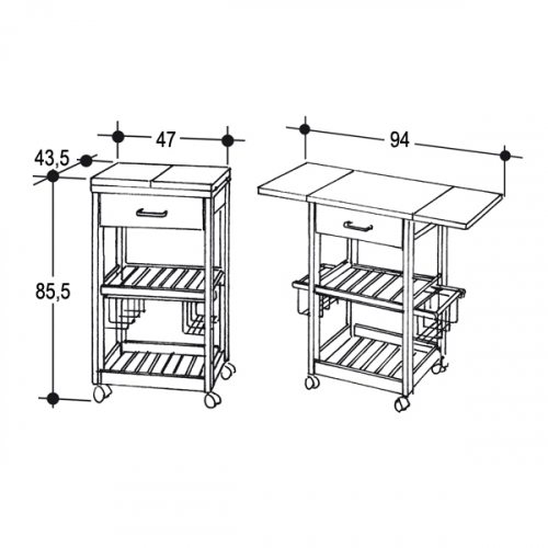 Особенности конструкции: 4 колеса делают сервировочный столик очень мобильным. 2 тормоза позволяют фиксировать его на одном месте. Компактная складная конструкция позволяет экономить место на кухне и не создаст хлопот хозяйке.