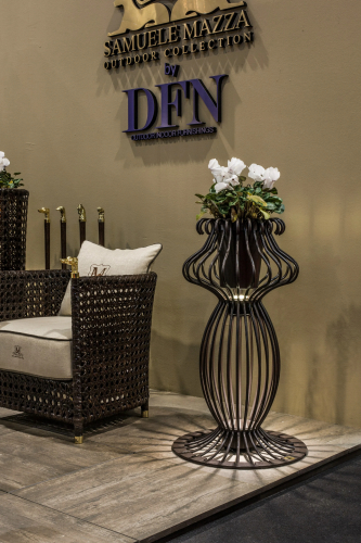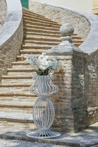 В коллекции Sole кованое железо превращается в беседки, лампы и величественные вазы. Эта коллекция создана с использованием железных прутьев, которые принимают извилистые формы благодаря мастерству мастеров DFN. Кашпо Sole, полностью сделанное из кованого железа, вдохновлено сказочными образами, которые не останутся незамеченными. Концепция total look остается фундаментальной особенностью этой коллекции, которая переосмысливает железо, превращая его во что-то роскошное и элегантное. В то же время все элементы были обработаны, чтобы гарантировать длительное использование в наружных условиях. Часто используется в сочетании с элементами из коллекций Sirio и Canopo. Посмотреть палитру материалов Samuele Mazza.
