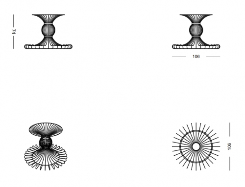 Железные прутья образуют основу, из которой создаются извилистые формы изделия Sirio. Искусное мастерство, использованное для обработки этого традиционного материала, позволяет создавать сложные на вид конструкции. Проницательность дизайнера смягчила суровый вид железа за счет извилистого вида. Мебель, созданная вручную мастерами, приобретает новый роскошный и элегантный вид.