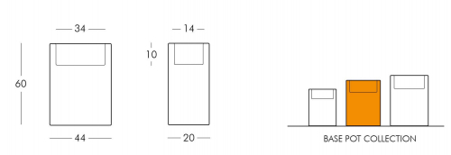 Base Pot - ультра-минималистичное кашпо, доступное в разных размерах. Форма параллелепипеда, а также множество размеров и цветов, в которых оно доступно, позволяют кашпо быть идеальным дополнением с оттенком красочной элегантности в помещениях и на открытом воздухе.