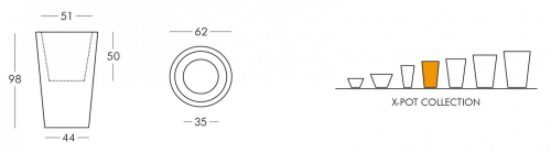 X-Pot - это коллекция красочных и минималистичных кашпо: их двойная стенка и круглое основание делают X-Pot идеальными для всех обстановок. Коллекция X-Pot доступна в разных размерах и поэтому идеально подходит для придания цвета или элегантности в частных садах или террасах или приветствовать гостей в отелях, ресторанах или магазинах.