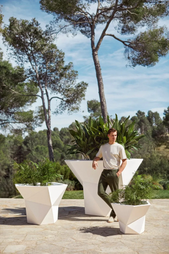 Faz - это минималистичная коллекция современной уличной мебели и цветочных горшков, разработанная Рамоном Эстеве для Vondom. Он архитектор гармонии, безмятежности, вневременности и универсальности, создавший минеральные и выразительные формы, которые делают Faz дизайном, который прекрасно вписывается в частные дома и различные пространства. Результатом работы дизайнера является изделие, отличающееся прямыми линиями, которые придают цветочным горшкам прочную форму и сильное визуальное воздействие.