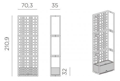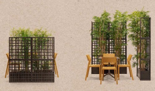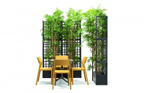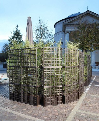 Sipario 3 – это оригинальная модульная система уличных ограждений из регенерированного стеклопластика с самополивающимся кашпо. Модули с асимметричной сеткой можно соединять вместе без использования винтов и свободно комбинировать по вертикали или горизонтали, дополняя внешний вид окружающего пространства и создавая уединенный уголок. Линейные, ломаные и изогнутые модульные конфигурации помогают стильно и композиционно разделить пространство в саду. Отличное решение для летних площадок кафе и ресторанов.