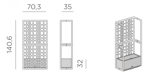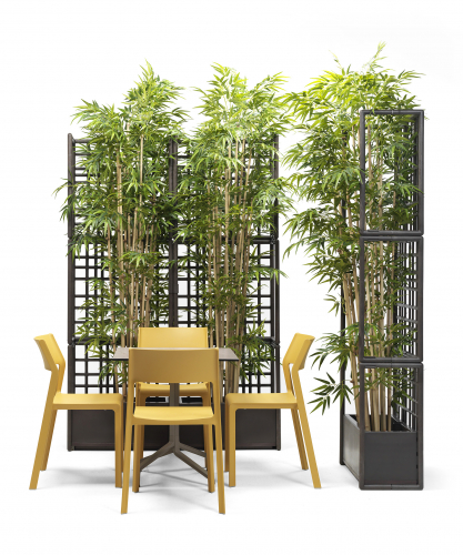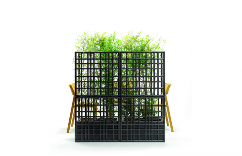 Sipario 2 – это оригинальная модульная система уличных ограждений из регенерированного стеклопластика с самополивающимся кашпо. Модули с асимметричной сеткой можно соединять вместе без использования винтов и свободно комбинировать по вертикали или горизонтали, дополняя внешний вид окружающего пространства и создавая уединенный уголок. Линейные, ломаные и изогнутые модульные конфигурации помогают стильно и композиционно разделить пространство в саду. Отличное решение для летних площадок кафе и ресторанов.