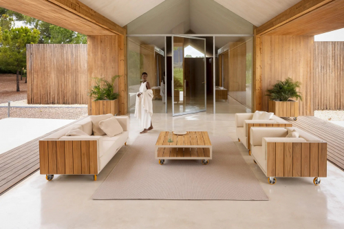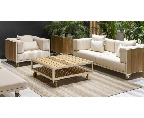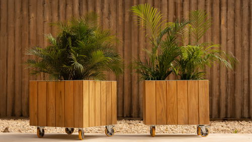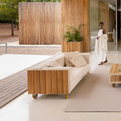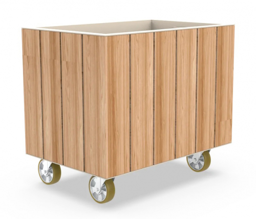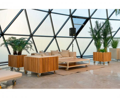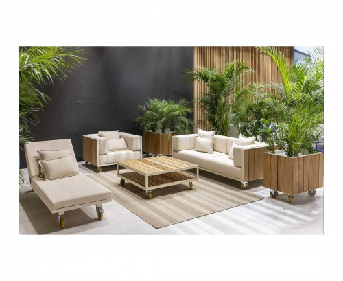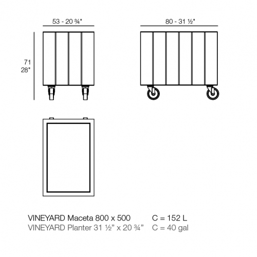 Коллекция Vineyard представляет собой коллекцию садовой мебели из алюминия и дерева в деревенском и теплом стиле. Разработанное Рамоном Эстеве, чтобы предложить минималистичное решение для открытых пространств, кашпо имеет прочную и долговечную конструкцию. Контраст между тиком и окрашенным металлом, а также колеса придают модели уникальную эстетику.