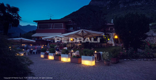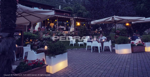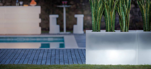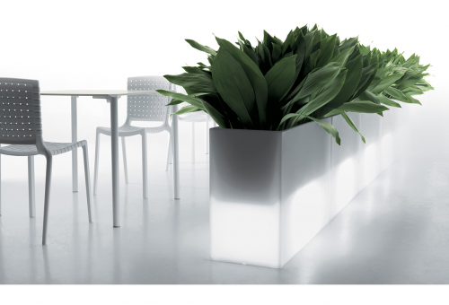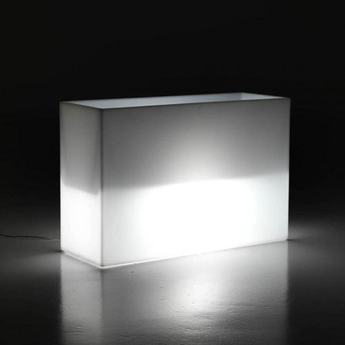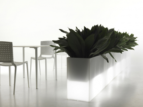 Сиденье становится вазой, а ваза – светящимся объектом. Универсальный и современный разделитель пространства Kado, изготовленный из полиэтилена с матовой отделкой, отличается минималистичным дизайном. Kado характеризуют геометрические, фундаментальные линии. Преимуществом является нетоксичный материал, устойчивый к ударам и атмосферным воздействиям. В качестве аксессуаров доступны мягкая подушка, которую можно использовать на улице, комплект освещения, комплект для крепления к полу и стальная тележка для транспортировки. Встроенная подсветка. Работает от постоянного тока.