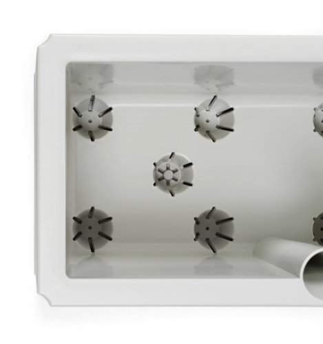 Мебель создается с использованием 30% переработанного стеклопластика и 70% нового материала. Тщательно продуманный процесс производства исключает влияние вторичного сырья на качество продукции.