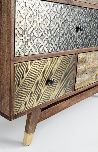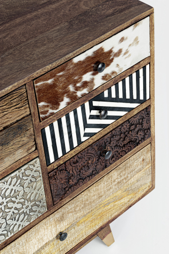 Необычный комод Dhaval из коллекции Homemotion дополнит современный и стильный интерьер. Не только эстетичность, но и функциональность присуща этому изделию - 7 выдвижных ящиков для хранения любых вещей. Использование в качестве материалов дерева манго и акации обеспечивает превосходный внешний вид во время всего срока эксплуатации.