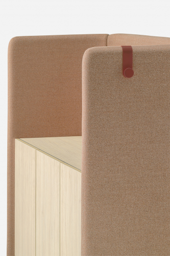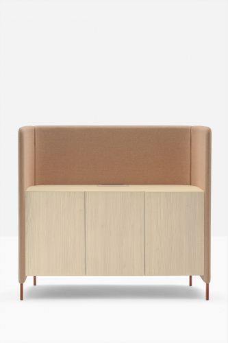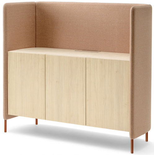 Buddyhub Sideboard – это универсальный предмет мебели, который обеспечивает вместимость для хранения, а также служит разделителем пространства в рабочих помещениях как визуально, так и акустически. Buddyhub Sideboard имеет звукопоглощающую панель, которая охватывает комод со столешницей и тремя дверцами. Водостойкая столешница оснащена функциональным кабельным каналом, что позволяет размещать небольшие приборы. Buddyhub Sideboard - это модульный предмет мебели, который, учитывая его структуру, можно комбинировать с другими элементами из той же коллекции. Панель поддерживается алюминиевыми ножками, которые приподнимают ее над землей, облегчают ее общий вид, одновременно повышая функциональность и облегчая операции по очистке и обслуживанию.
