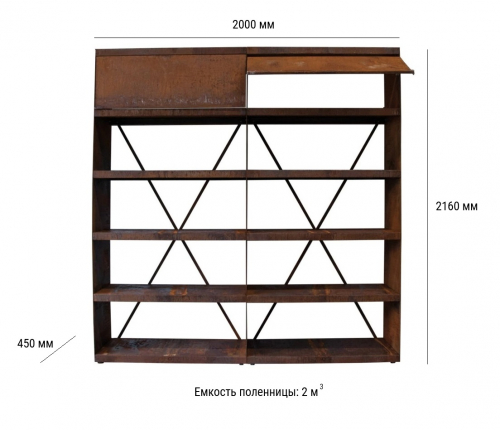 Поленницы доступны в трех разных размерах: 1000 мм, 2000 мм, 3000 мм, их можно комбинировать между собой, создавая уникальное пространство для отдыха в вашем саду. Рекомендуется крепить поленницу к стене.