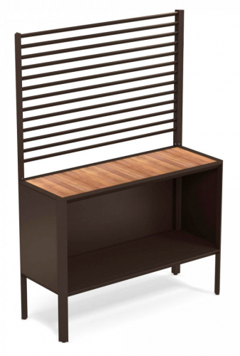 Configuration 4 – это металлическая станция для официанта коллекции Camaleon. Данная серия является многофункциональной и инновационной модульной системой, позволяющей свободно создавать разнообразные композиции. В нее входят модули из высококачественных материалов, которые позволяют использовать изделия на открытых площадках. Configuration 4 станет хорошим решением для зонирования летнего кафе или веранды ресторана. Модель также можно использовать в различных интерьерах помещений.